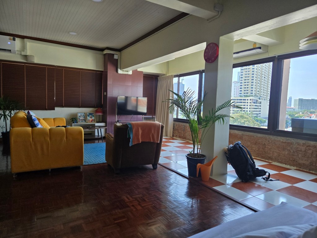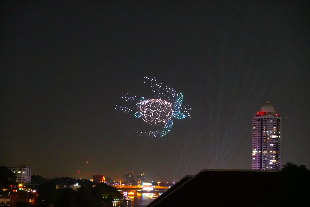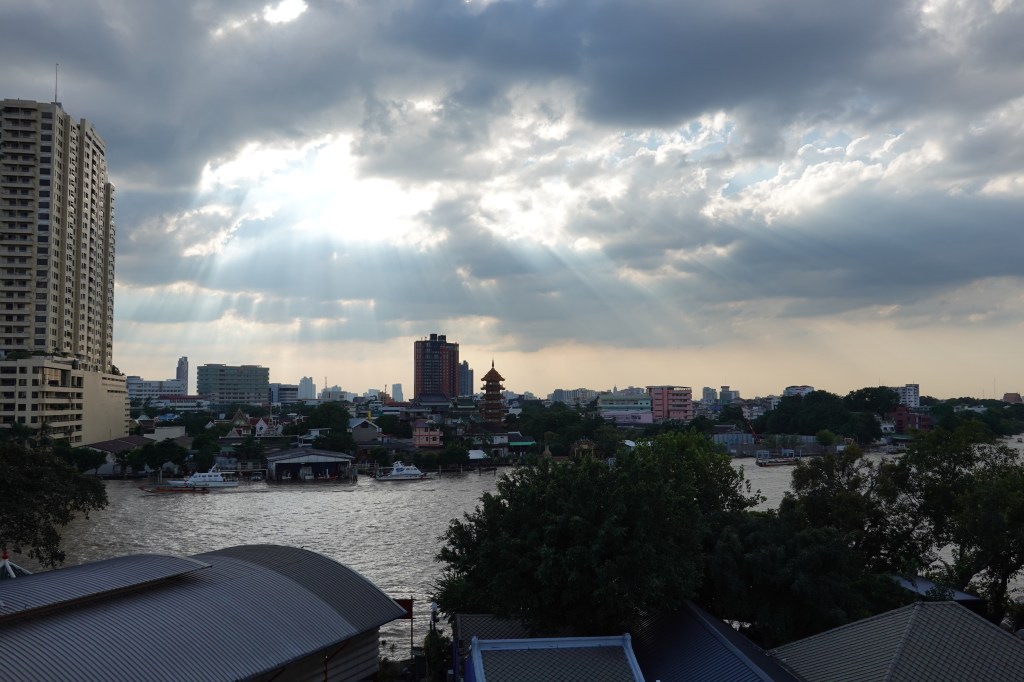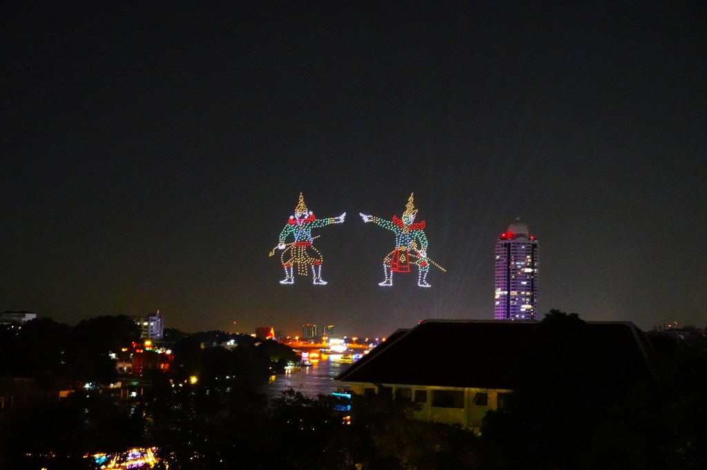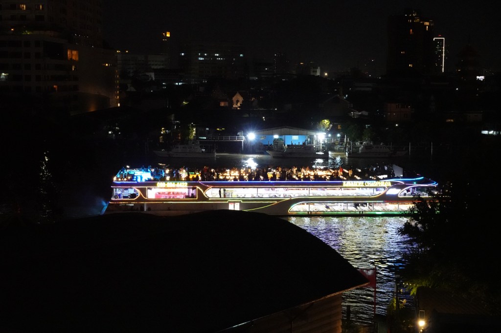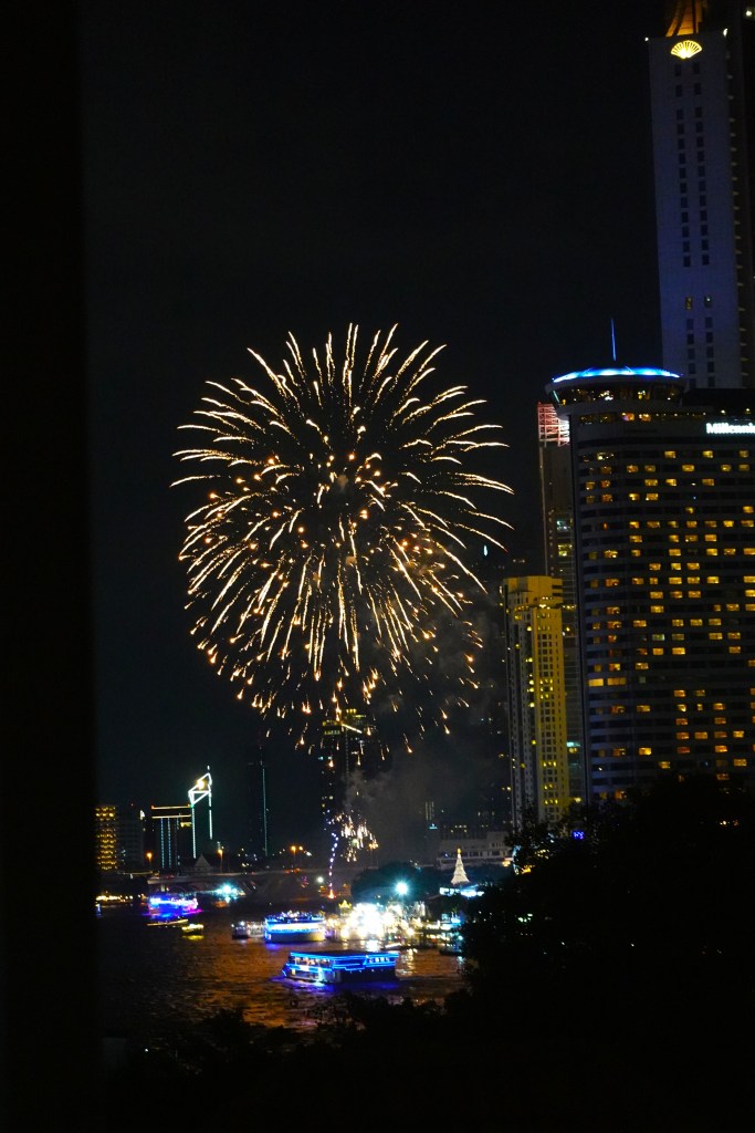 Our flat was in an old condominium building so no fancy pool or gym for us this time (world’s tiniest violin starts playing). But what a view! We directly overlooked the Chao Phraya river and had clear sight of the many boats coming to-and-fro. And that’s not to mention the drone light show we saw each night, as well as a few cheeky fireworks.