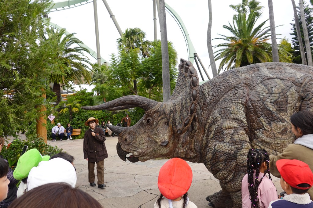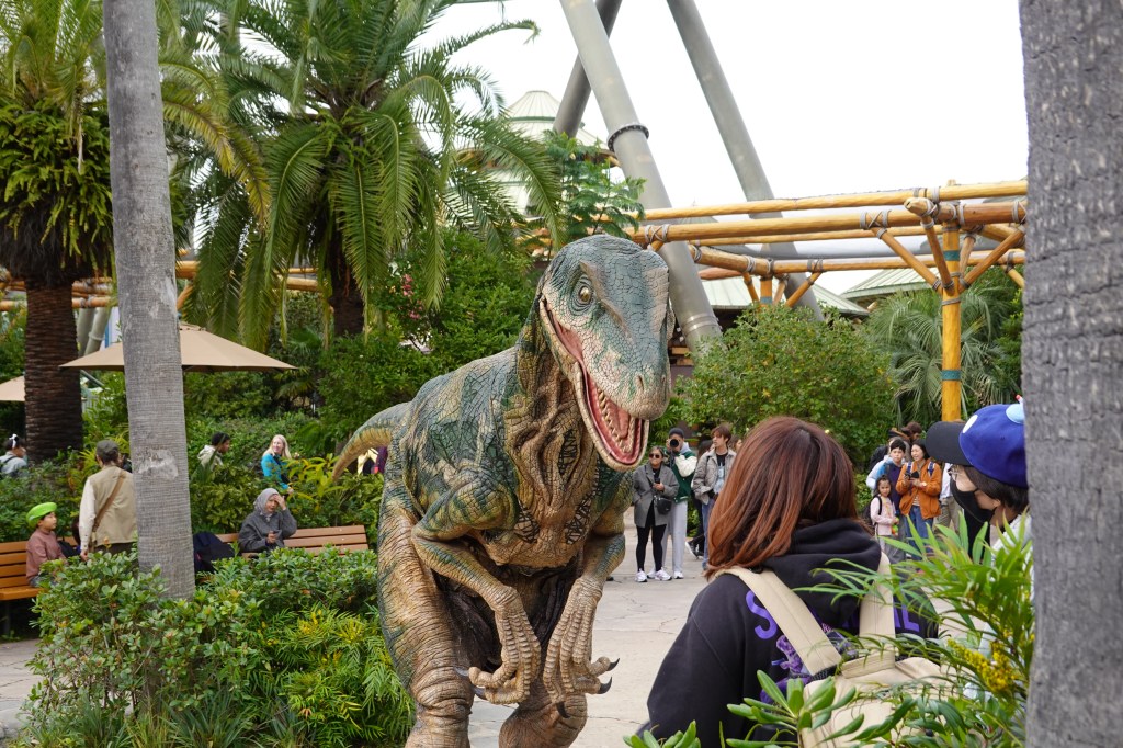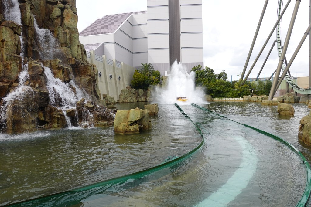 Our next stop was the Jurassic Park area, where you could meet ‘real’ dinosaurs. We got soaked on the Jurassic Park water ride and then, feeling brave, we headed onto the Flying Dinosaur rollercoaster. We probably should have realised how hardcore this ride was when not only did we have to store all bags and pocket items in a locker but were then searched (twice!) on our way into the queue.