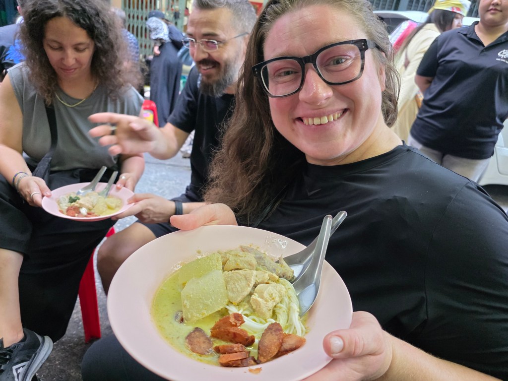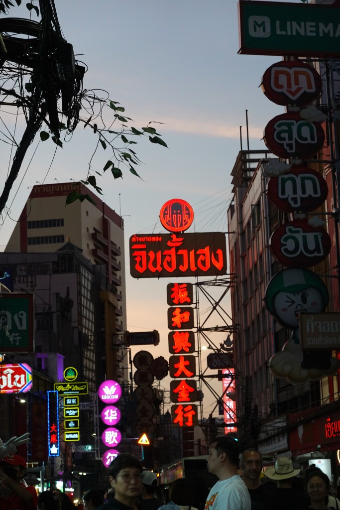 We book-ended our month in Thailand with a couple of days in Bangkok, this time staying in Chinatown1. Colourful temple arches cover the streets like bright canopies and dragons stare down at you from the roofs, the air fragrant with mouth-watering aromas of sizzling street food. It felt busier here, more lived-in than the previous part of the city in which we stayed, like this was where locals actually live and work. It was much more in-keeping with how we pictured Bangkok before arriving, and we set out to make the most of it.