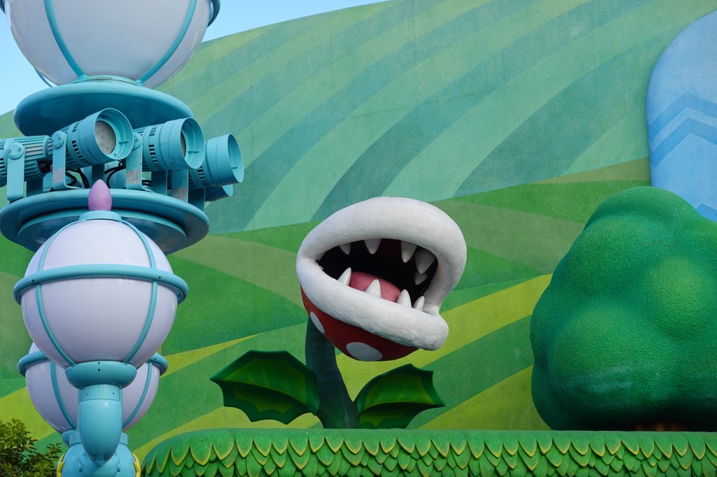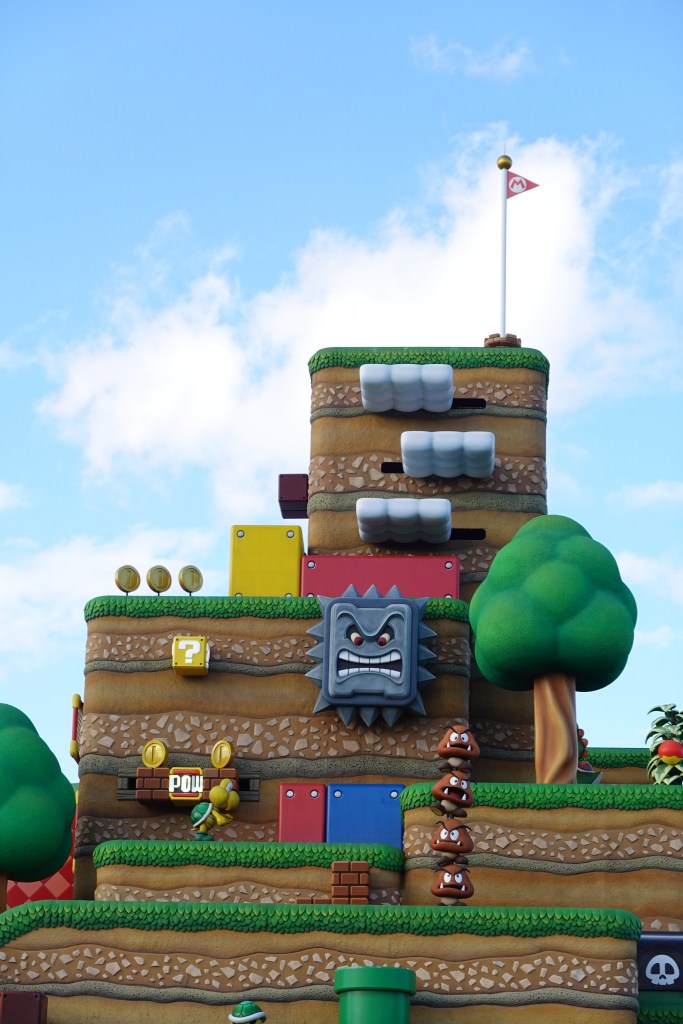 We headed straight to Super Nintendo World and hopped on the Mario Kart Ride, where four people in each cart competed to see who would score the most points,2 and the Donkey Kong rollercoaster. Great fun, and the aesthetic of the park itself is quite remarkable. Walking through a giant warp pipe, you emerge to a view of a platforming segment that looks as if it was pulled directly from one of the 2D Mario games. There were ‘? Blocks’ that jingled as kids leapt up and hit them (that didn’t work when I did it, not sure what that says about me) and there was a line to meet Donkey Kong. The kids queuing up were enthralled, which is brilliant as I thought from the look on ol’ DK’s face that he was about to eat them.