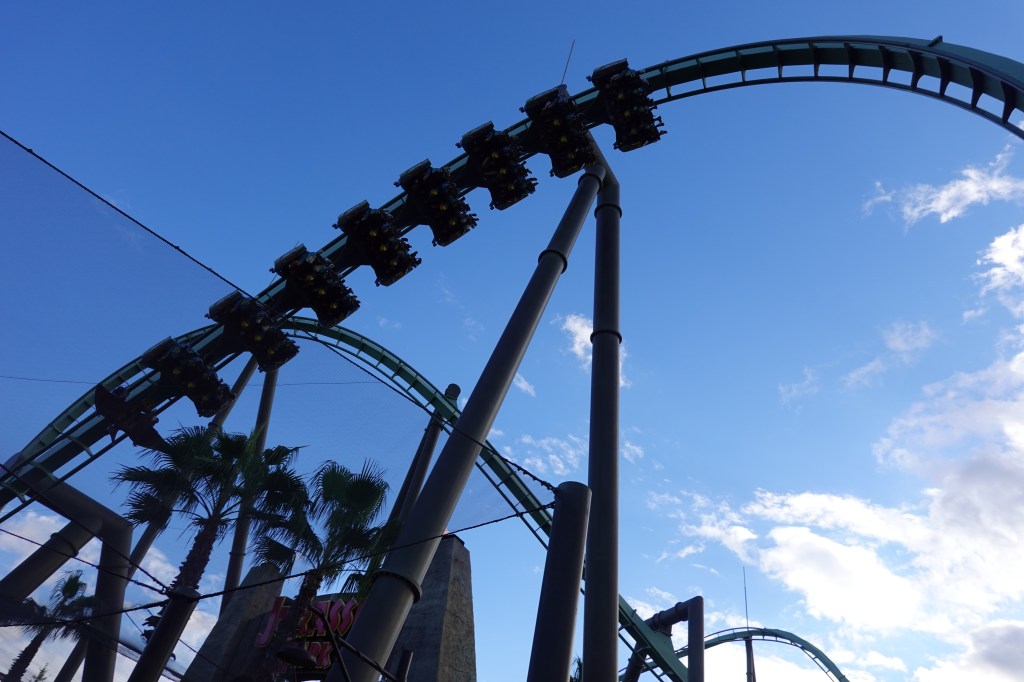For those unfamiliar, the Flying Dinosaur is what’s known as a flying rollercoaster – riders initially hop on and get restrained in a seated position before they are rotated to a face-down, horizontal position. The track runs above you as you look straight down. What’s more, the ride takes you up 46 metres above the ground. Those who know my feelings about heights may have a glimpse as to how I was feeling at the ride crept slowly and steadily upwards. After the climb, we were corkscrewed, thrown upside-down, and sped along the track in a way no other roller coaster really has. It was fun, don’t get me wrong, but if I told you that I initially wasn’t planning on drinking and then had a large beer at lunch, that should tell you what you need to know.