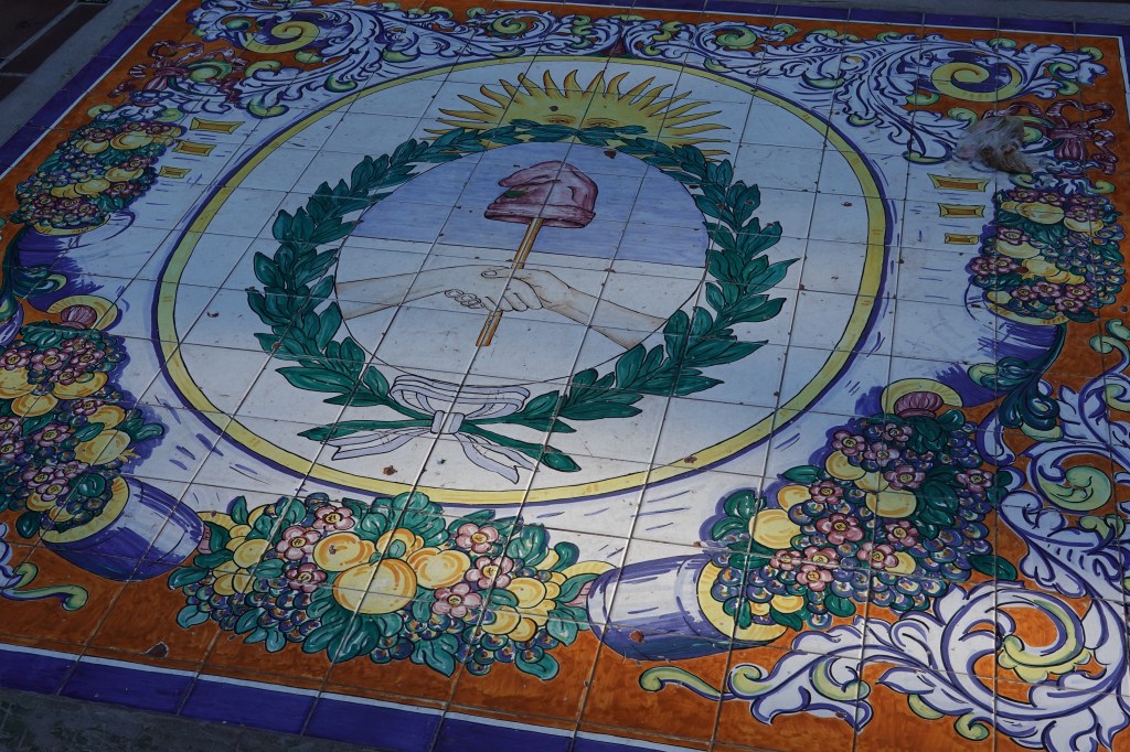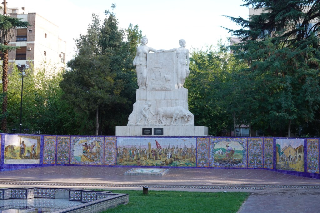 Agustín then took us to the Plaza España and Plaza Italia, two squares decorated and shaped by the generations of Spanish and Italian settlers of Mendoza. Each was decorated in a beautiful homage to its home country. Plaza España showcased tiled benches and pictures showing the origin stories of the Spanish colonists, and Plaza Italia contained a fountain showcasing the story of Dante’s Divine Comedy and a statue of Romulus and Remus suckling their adopted wolf mother.