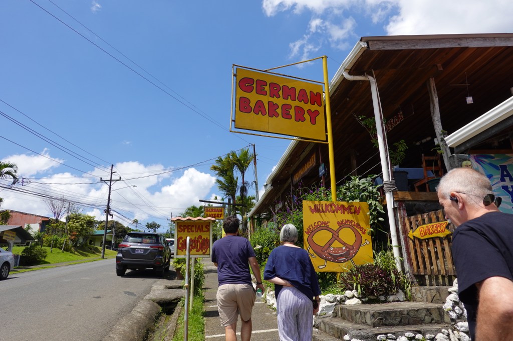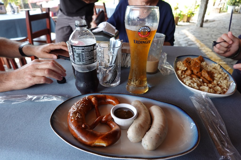 After our time at Arenal, it was time to head into the Cloud Forest Proper. We drove four hours to Monteverde, which is naturally a long time to drive so we needed to stop for a snack. Where was good to stop for food in this part of Costa Rica? Why, a German bakery, of course! It was the full shebang, with schnitzel, sauerkraut, and sausages on the menu. Iris even had a complimentary weissbeer. Prost!