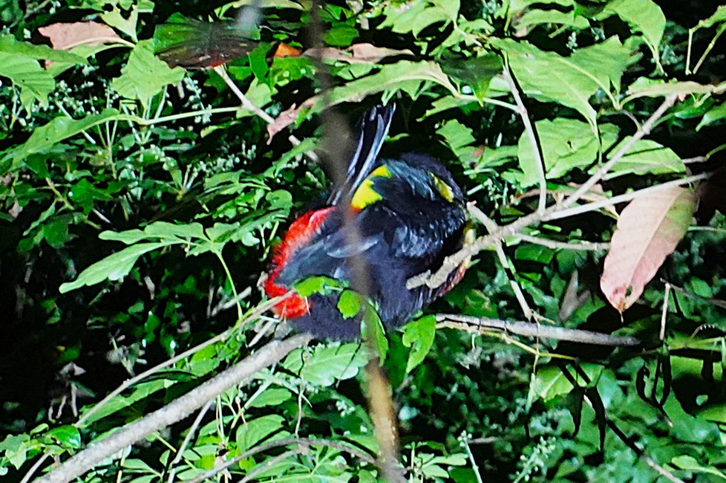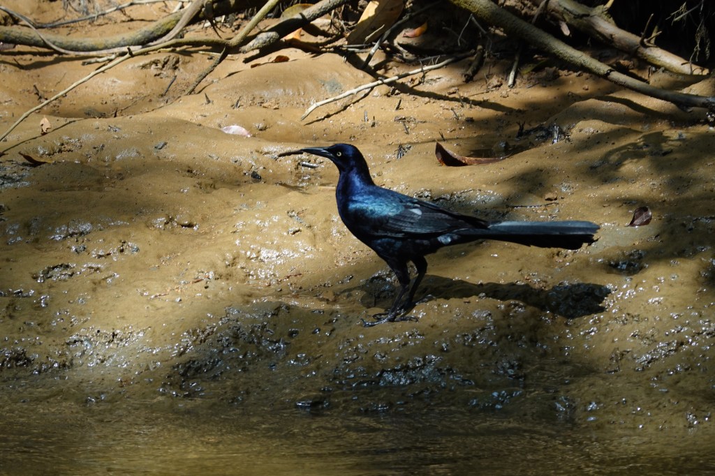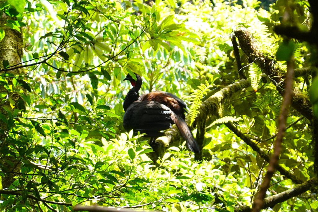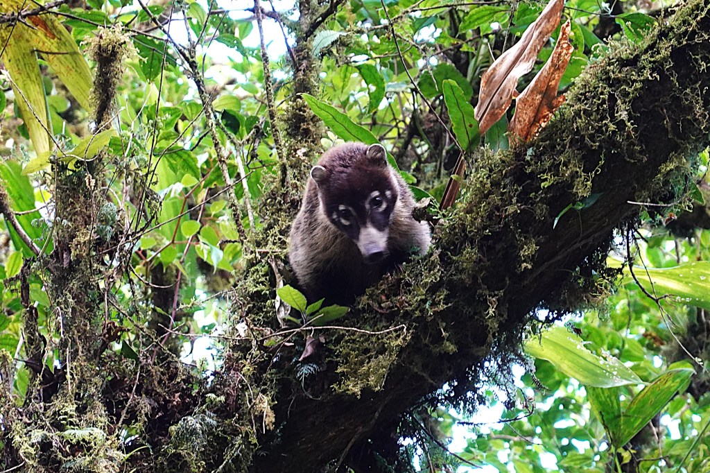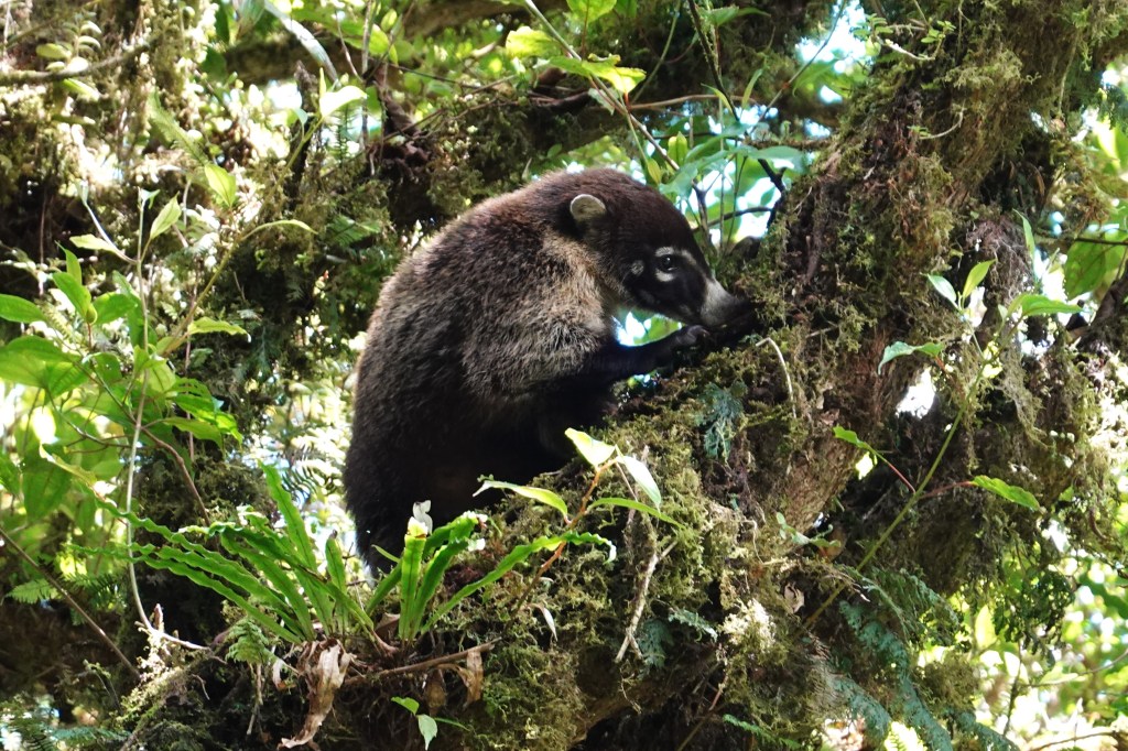 What wasn’t disappointing was the wildlife we encountered. Iris’s eagle eyes (we love a bird pun here) spotted a Crested Guan in the trees early on in our hike. ‘What a brilliant spot of luck!’ we thought, before, a few kilometres down the line, we spotted one of Costa Rica’s cutest and most intriguing mammals, a coatimundi. For those unfamiliar, imagine a cross between a racoon, a badger, and a dog who climbs trees and loves nothing more than snacking on insects. We stood and watched for about ten minutes while one climbed a tree and dug into branches to get the insects underneath. Amazing creatures!