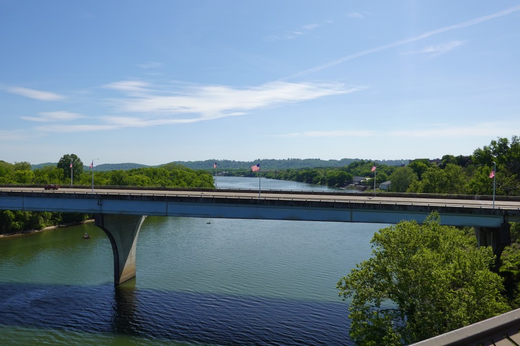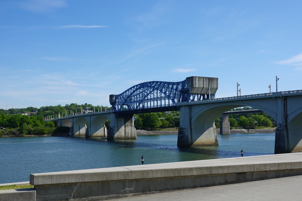 The town centre felt modern and more affluent than we imagined, full of independent restaurants and small businesses. We wandered to the sunny banks of the Tennessee River which runs through the centre of town, and were rewarded with sights of industrial bridges and public art.