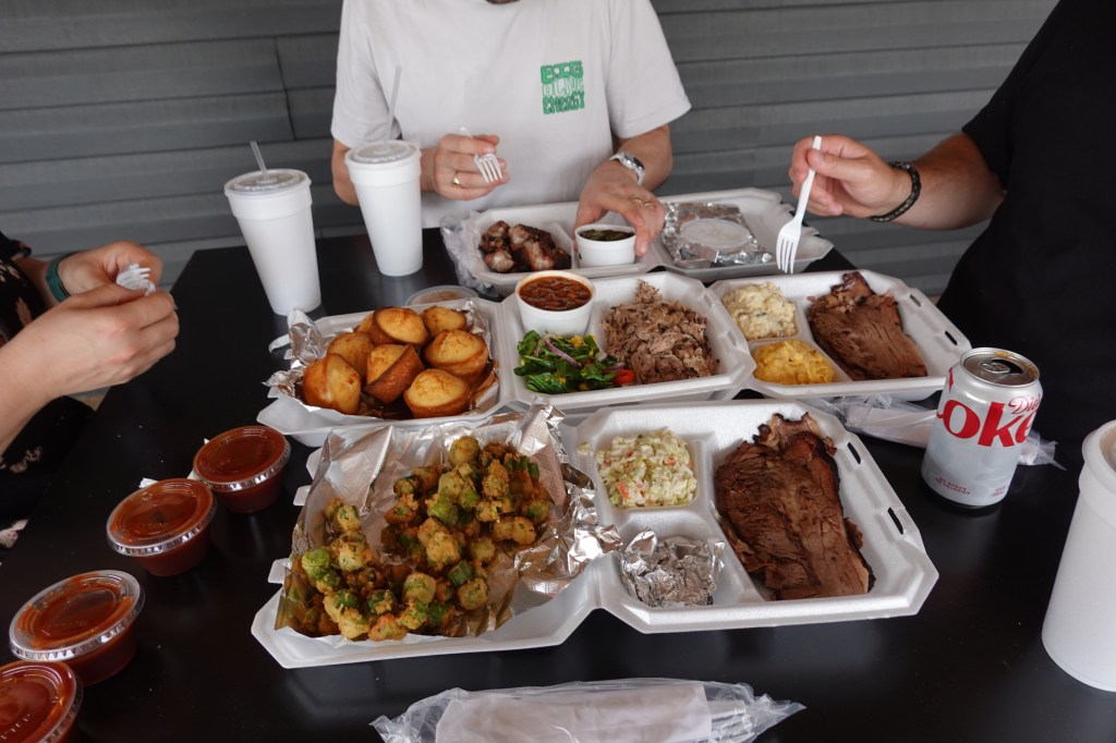 Following a quick stop in the local whiskey distillery on the way to the car, we headed to an iconic BBQ spot a little north of the downtown area: Off the Grill by Chef Q. Here we indulged in several types of BBQ meat including brisket, rib tips and pulled pork, with some classic accompaniments like mac and cheese, collard greens and cornbread. We also tried their three house made BBQ sauces: original, hot and blackberry (which was my personal favourite). Armed with leftovers for dinner, we headed home.