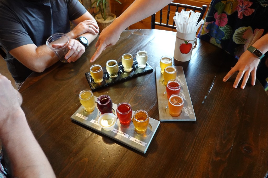 The next morning, after just about managing to squeeze our luggage into the car, we set off into Georgia to visit the Blue Ridge mountains. We’re staying in a beautiful log cabin style home on the top of a hill, with incredible vistas. We’ve enjoyed visiting a local orchard to try some fiercely average fruit wine and slightly better hard cider. And of course we had to buy a homemade cherry pie! We also visited a local vineyard for some barely drinkable wine – I think we’ve been spoiled by the bacchanalian delights of our time in New Zealand and Argentina.
